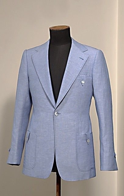 Artisanal Finish: Features hand-rolled lapels, functional surgeon's cuffs, and reinforced natural horn buttons.